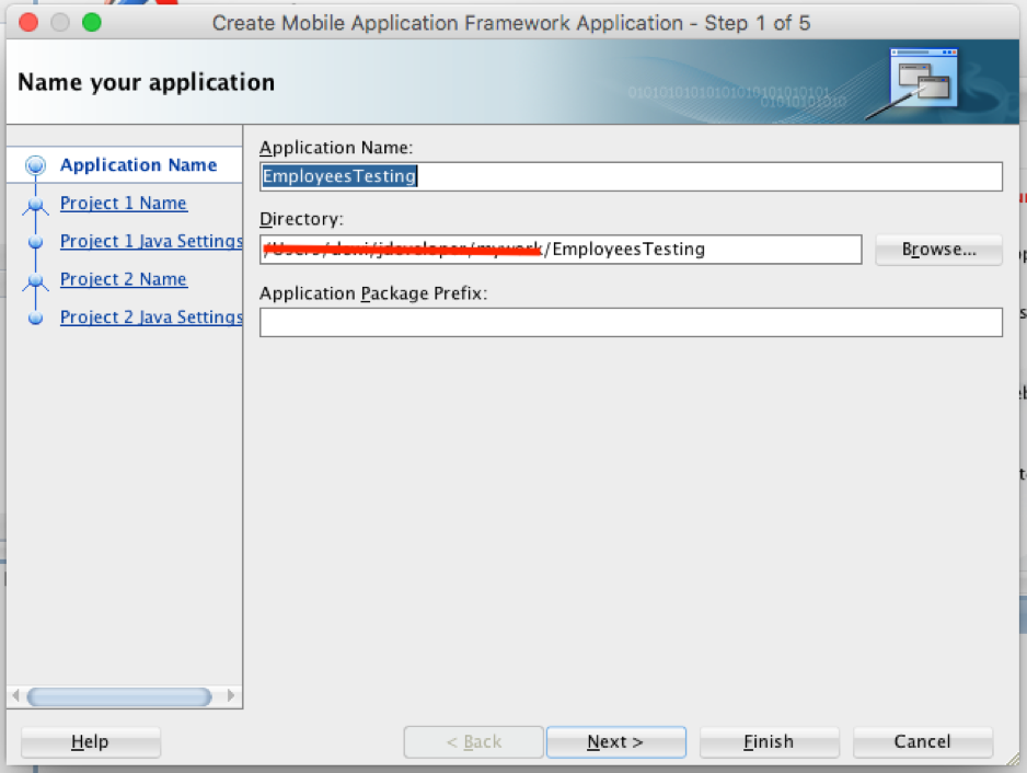 3. Isi Application Name dengan nama EmployeesTesting. Sesuaikan dengan lokasi direktorinya. Untuk Application Package Prefix, anda dapat menambahkan jika dibutuhkan.